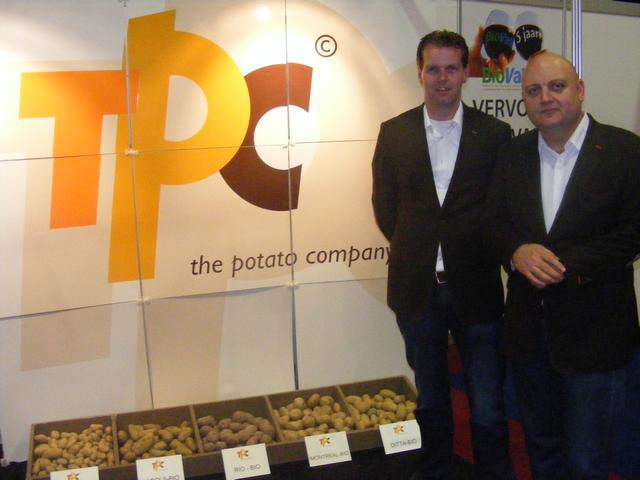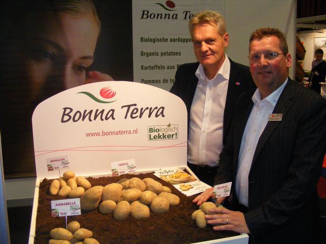 Jelle Bos (links) en Walter Testers van Bonna Terra met hun biologische aardappels.