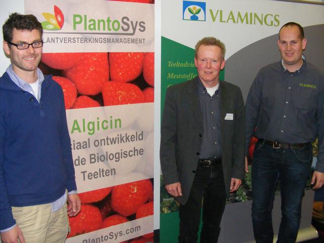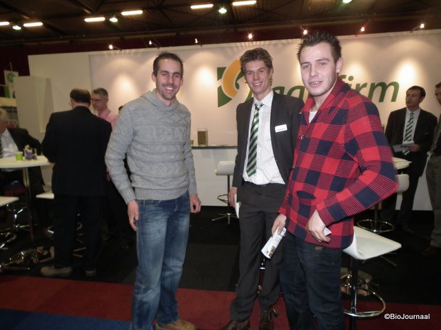 Awin Scholten (PlantoSys), Jelle Gerstel en Marijn Nap (Vlamings) deelden hun stand op de BioVak.
