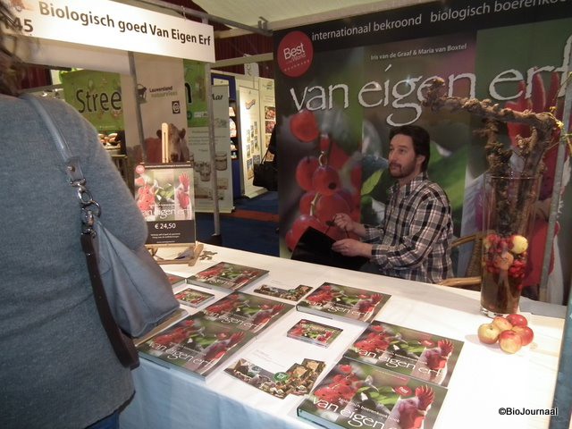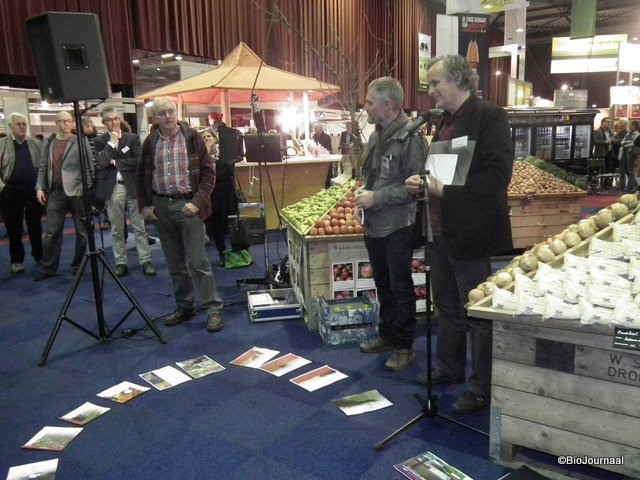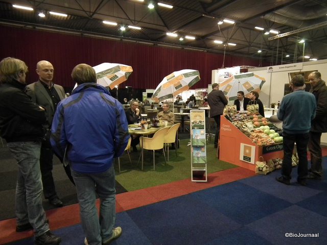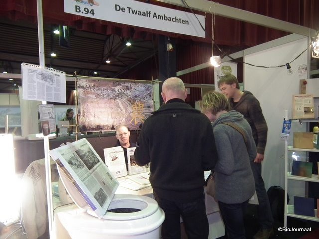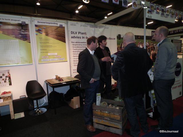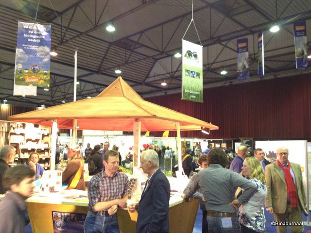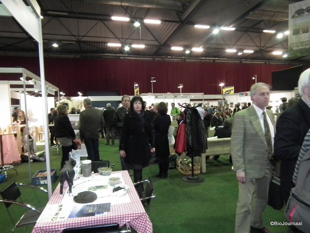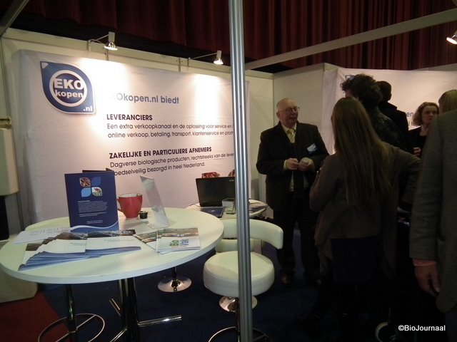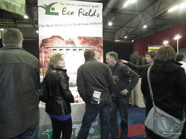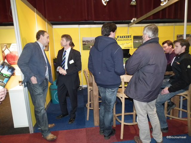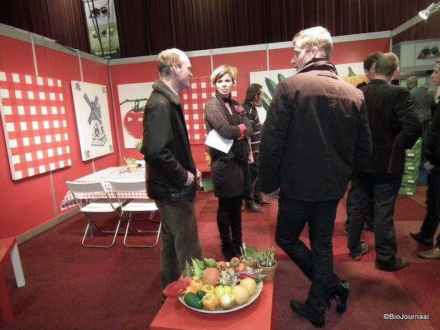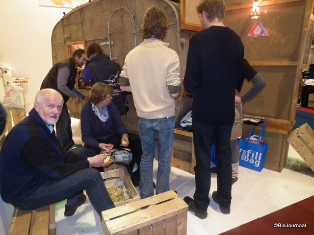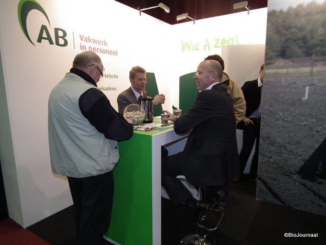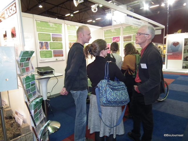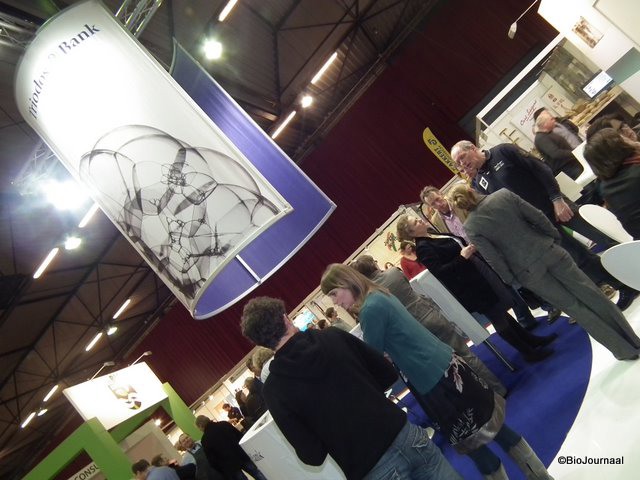 Drukte bij de stand van Eco Fields. Bart Boon zou later die dag de Ekoland Innovatieprijs 2012 winnen(gedeelde eerste plaats).