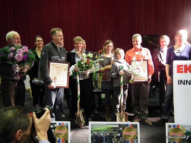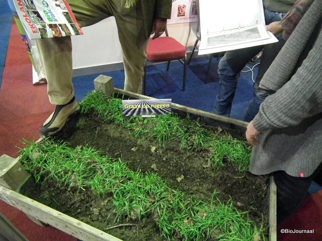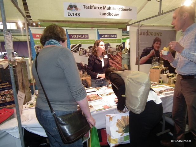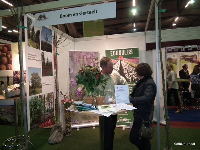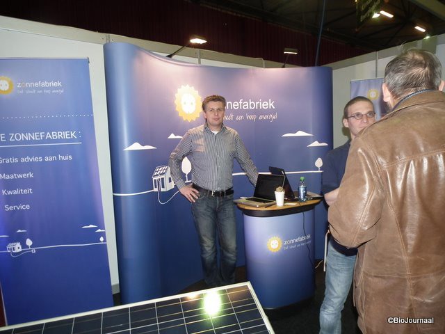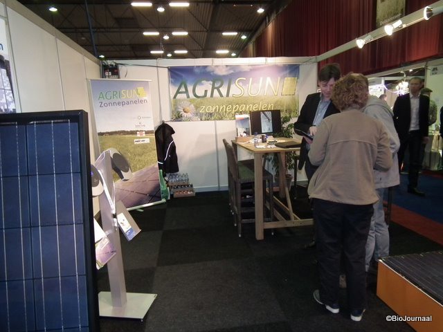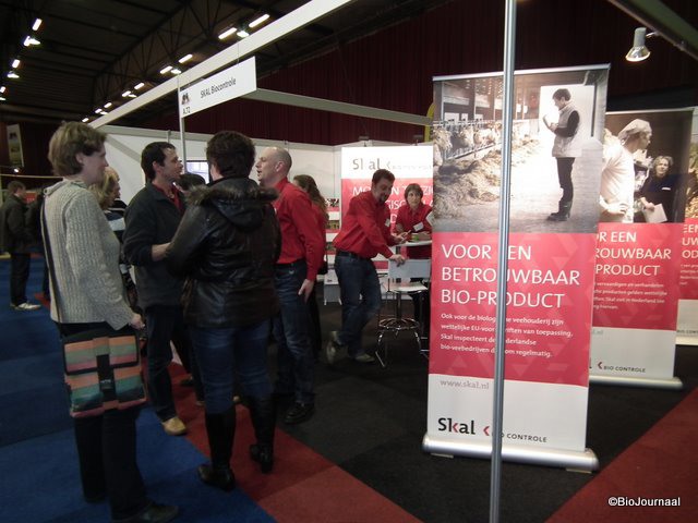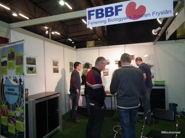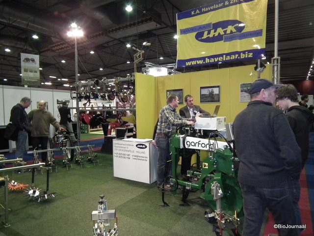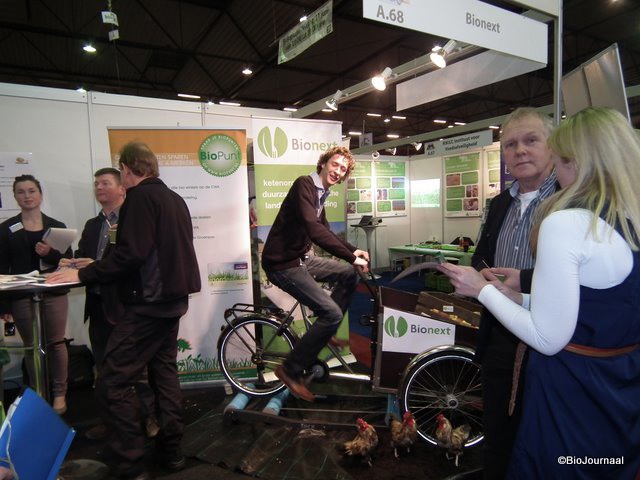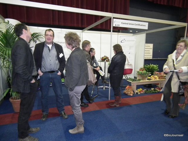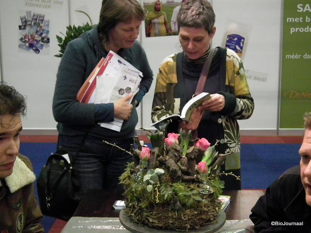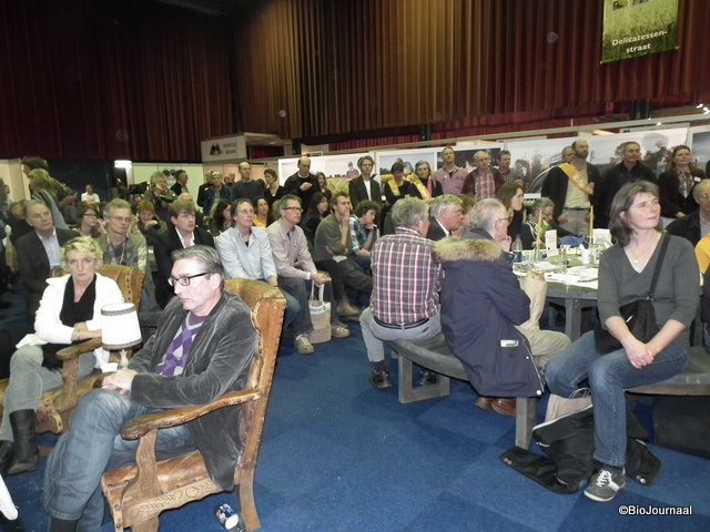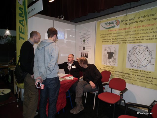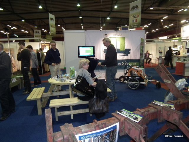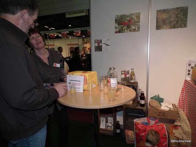 Drukte bij de stand van Eco Fields. Bart Boon zou later die dag de Ekoland Innovatieprijs 2012 winnen(gedeelde eerste plaats).