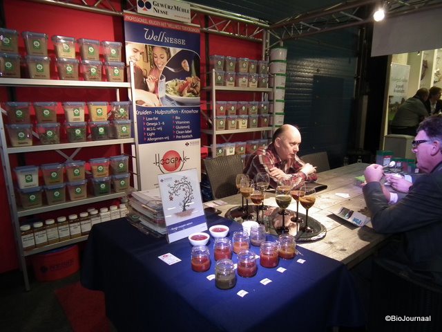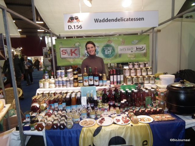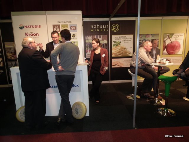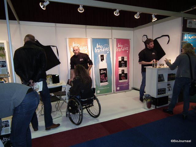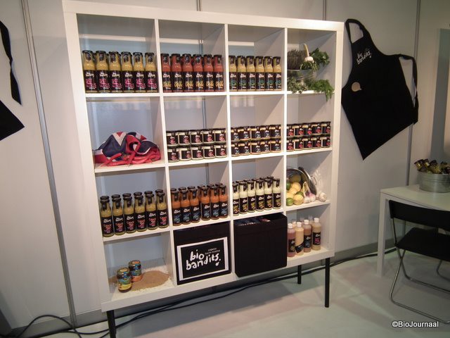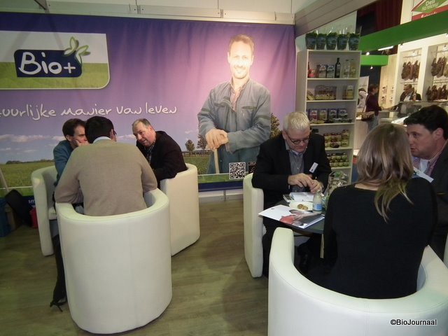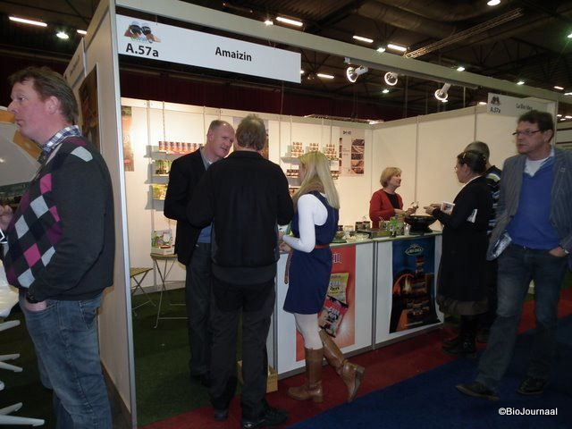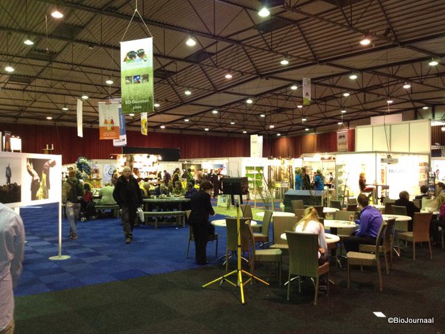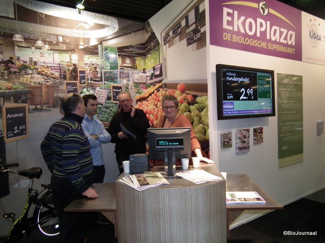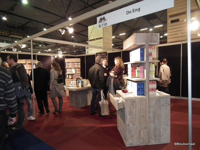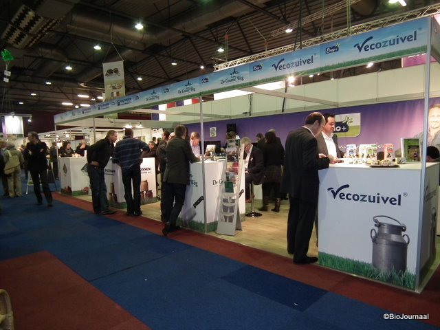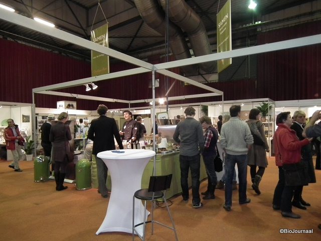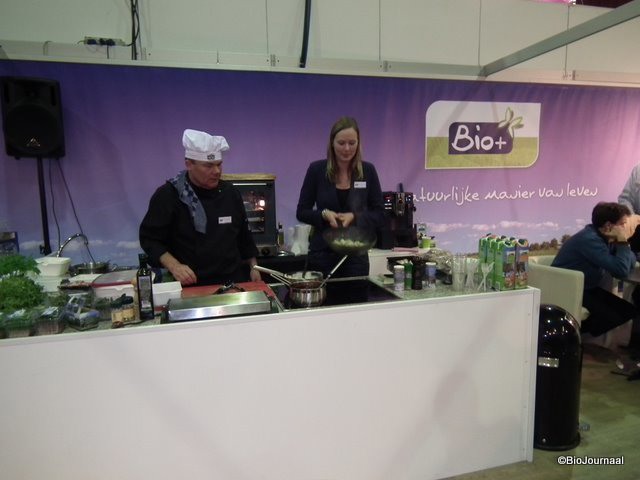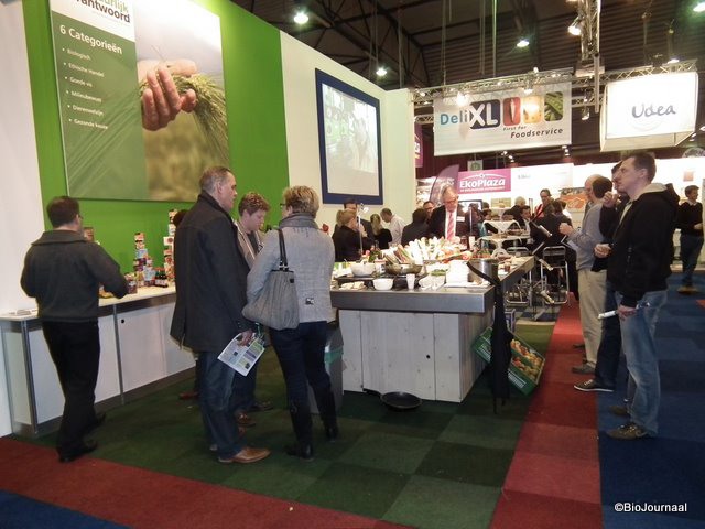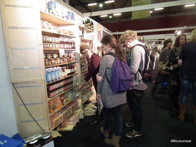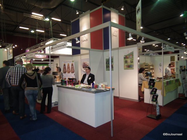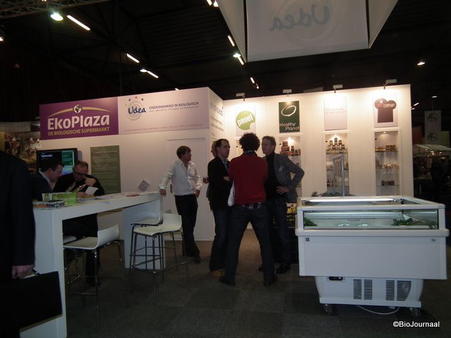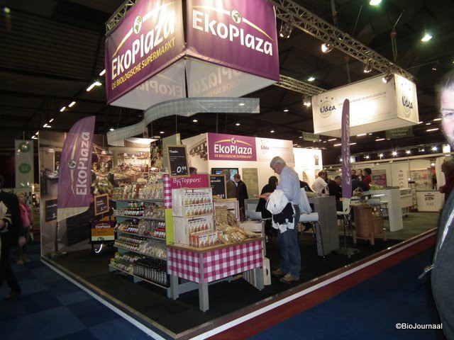 De combi-stand van Bio+ met Vecozuivel, De Groene Weg, Baltussen Konservenfabriek en Naturelle.