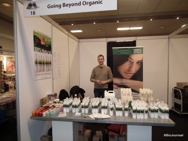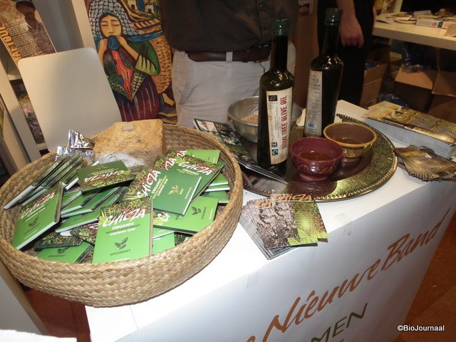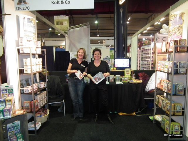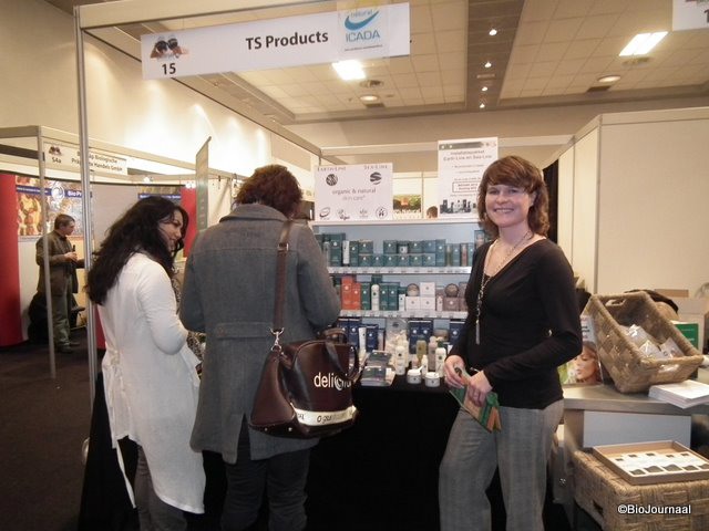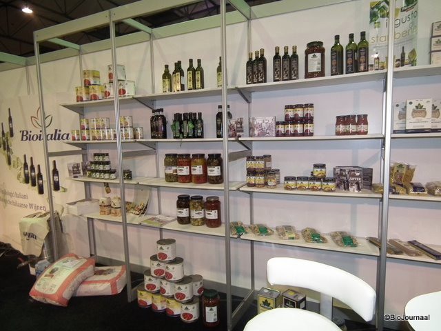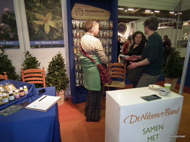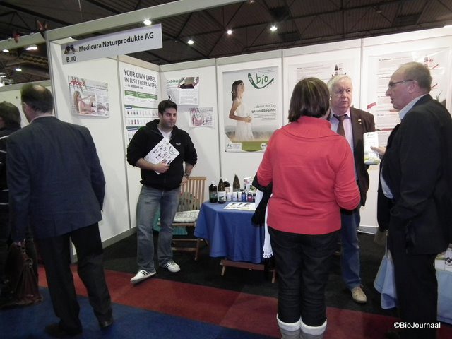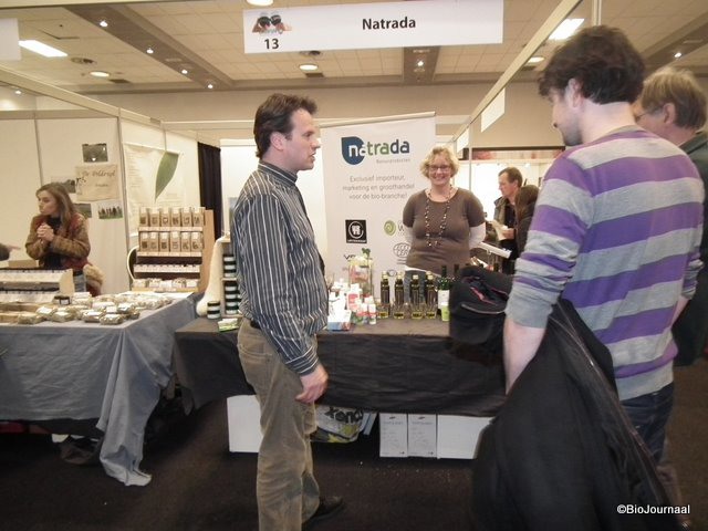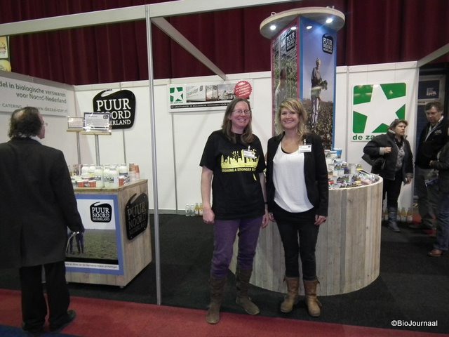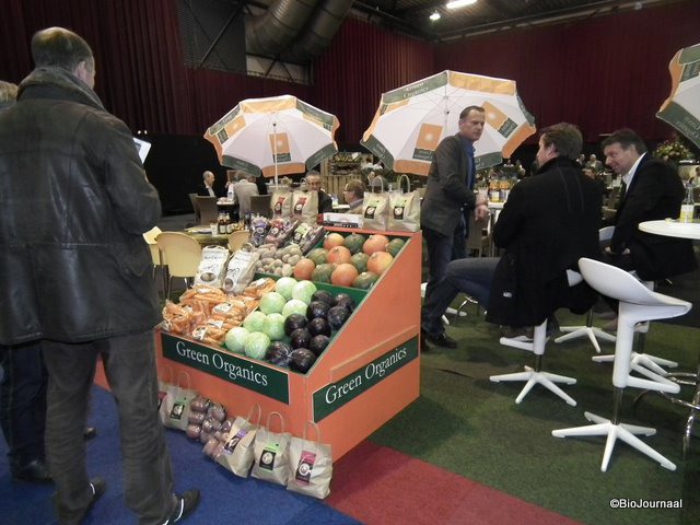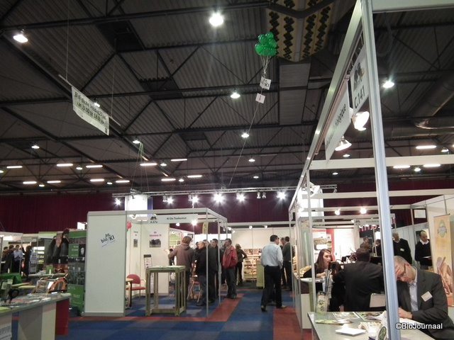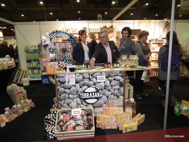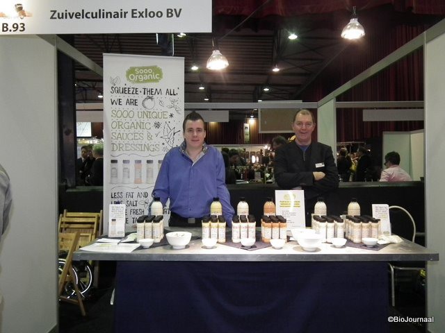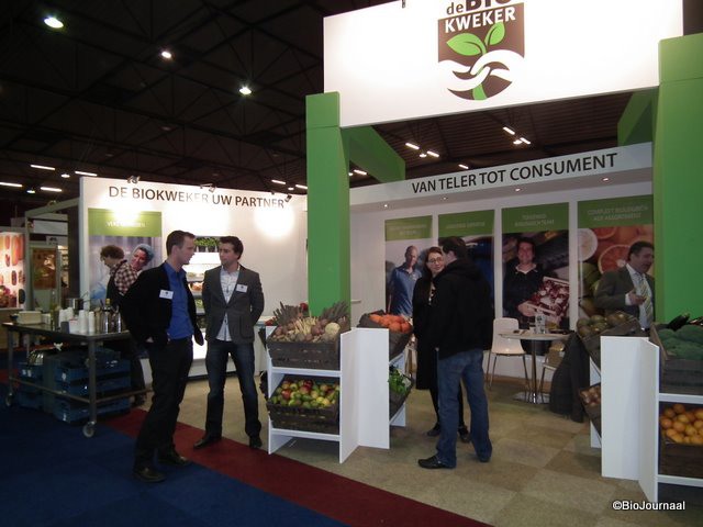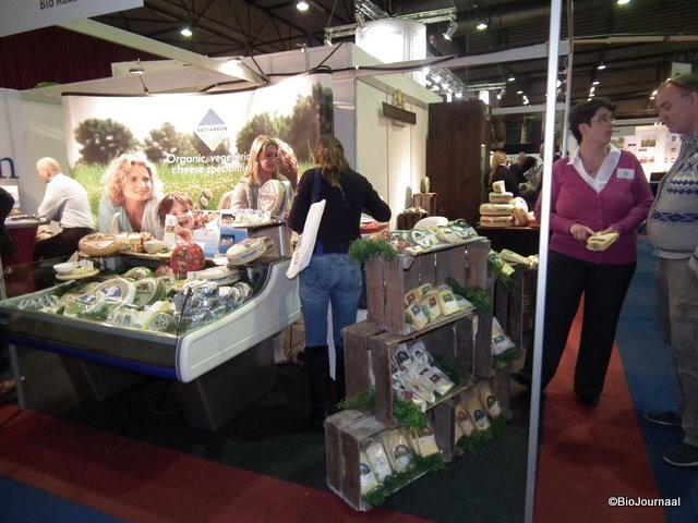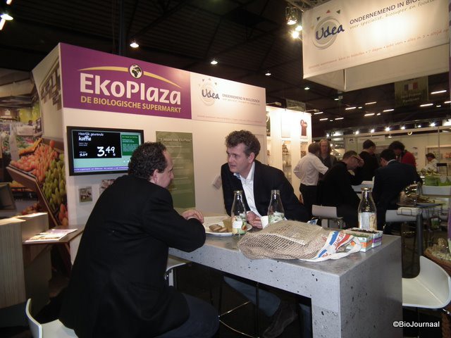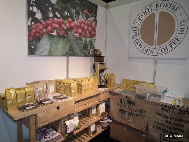 De combi-stand van Bio+ met Vecozuivel, De Groene Weg, Baltussen Konservenfabriek en Naturelle.