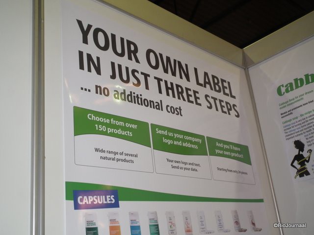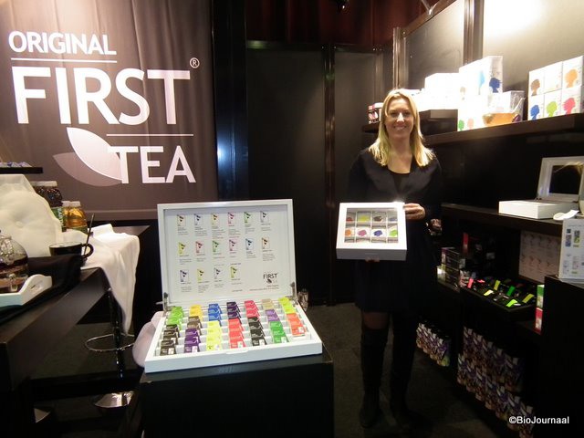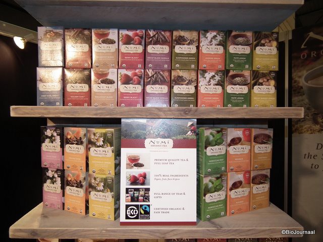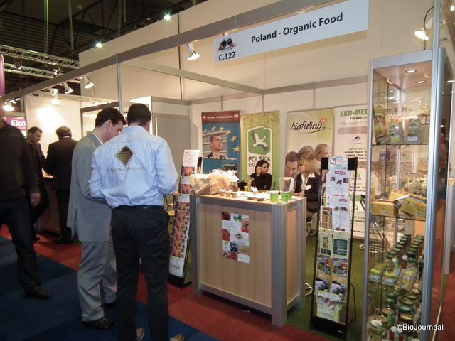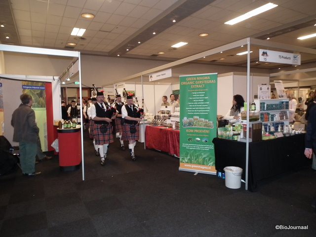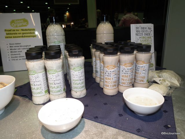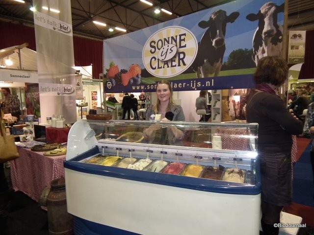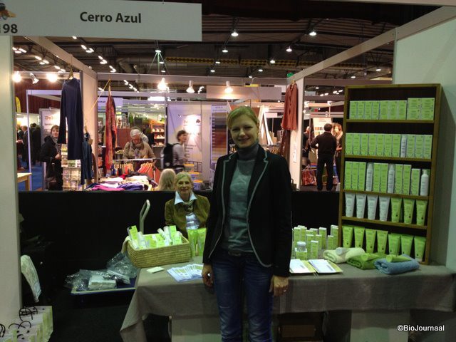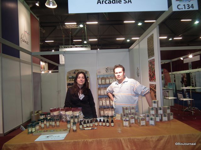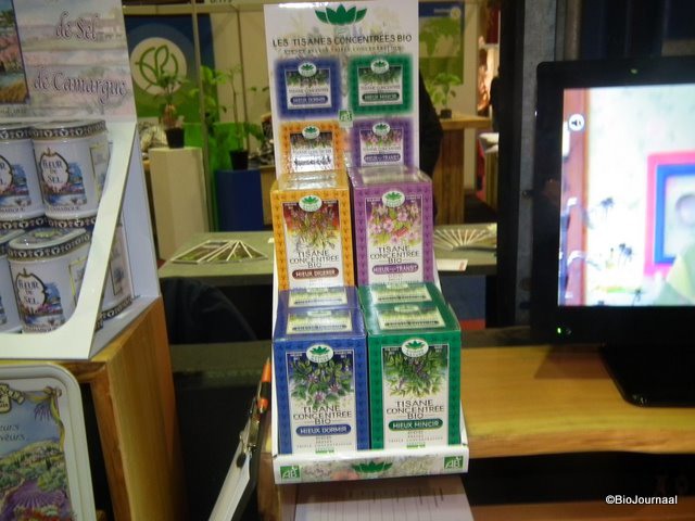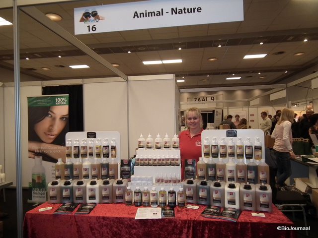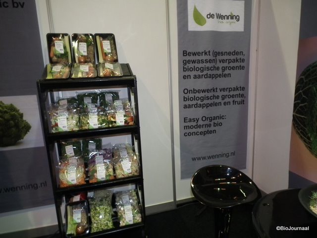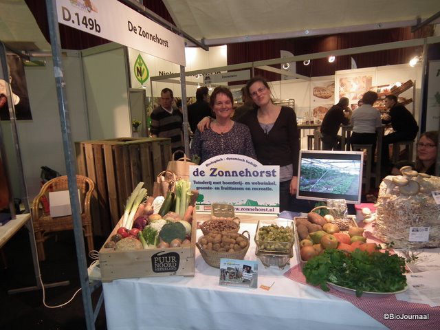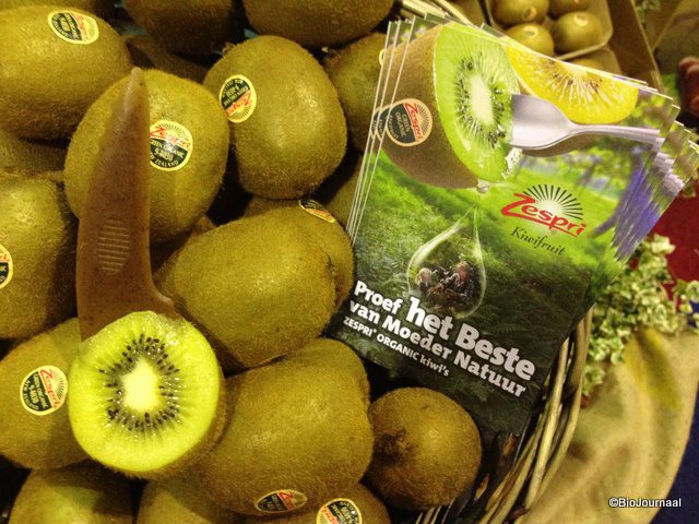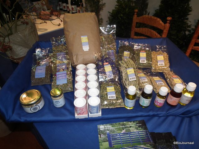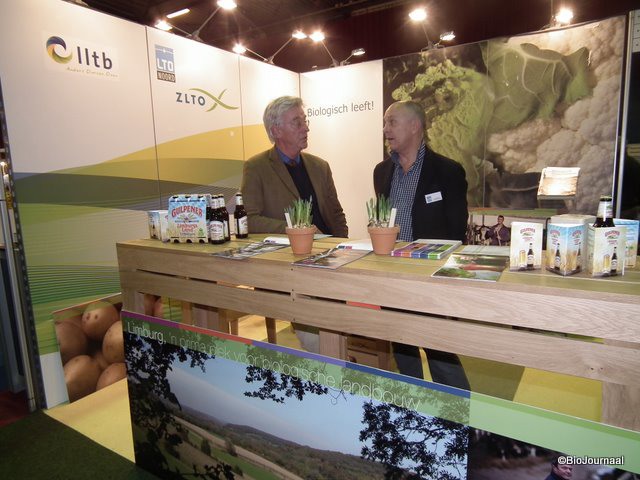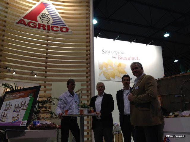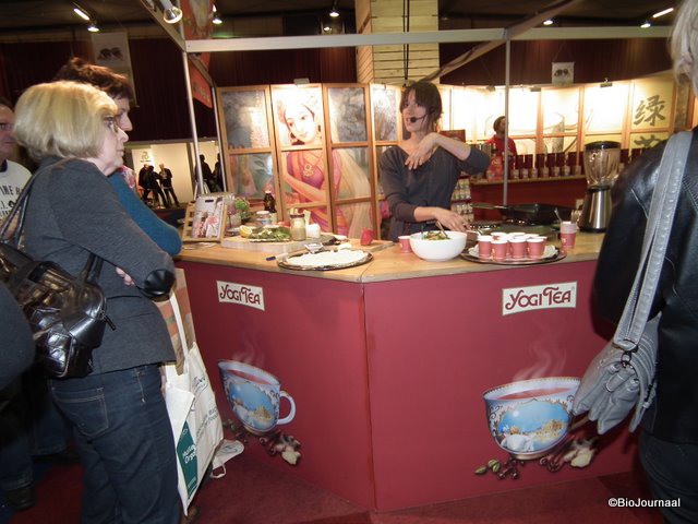 De combi-stand van Bio+ met Vecozuivel, De Groene Weg, Baltussen Konservenfabriek en Naturelle.