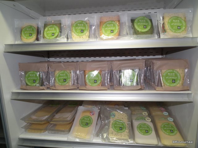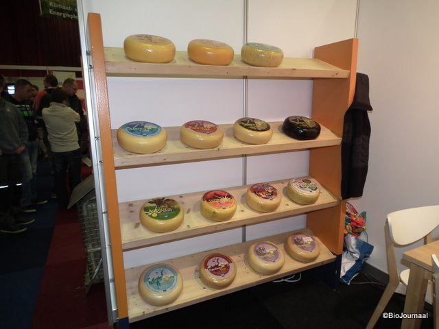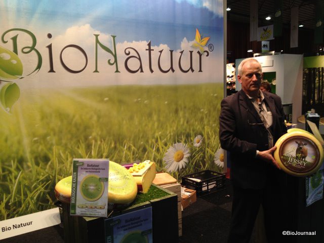 Rinus Gelderblom van BioNatuur laat zijn Bio Jersey kaas zien.
