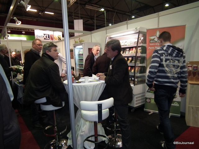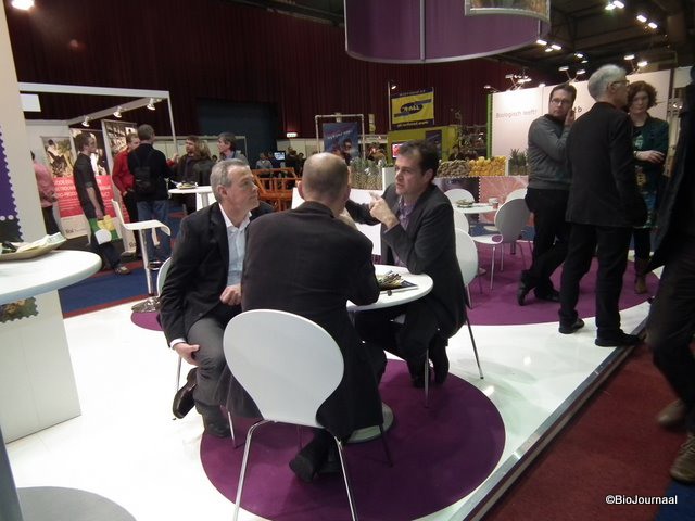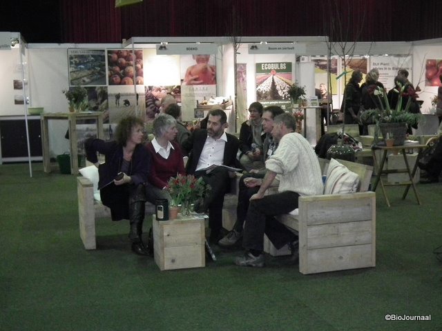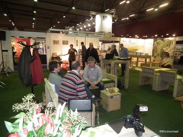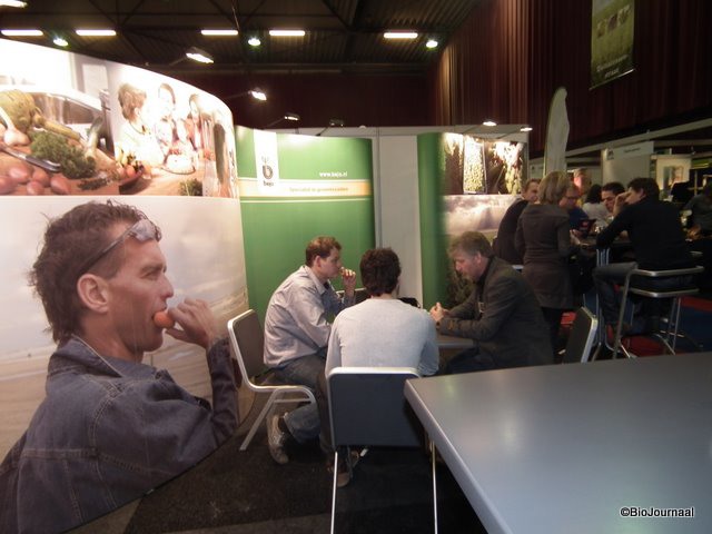 Terwijl de beurs wordt afgebroken blijft het nog lang gezellig bij Biojournaal.