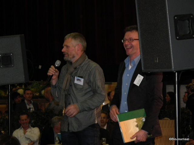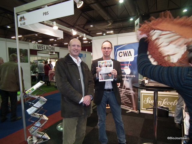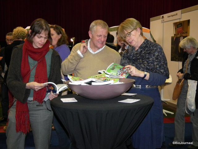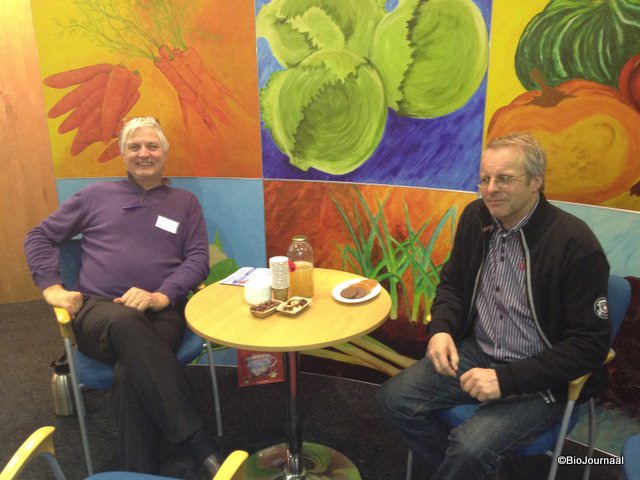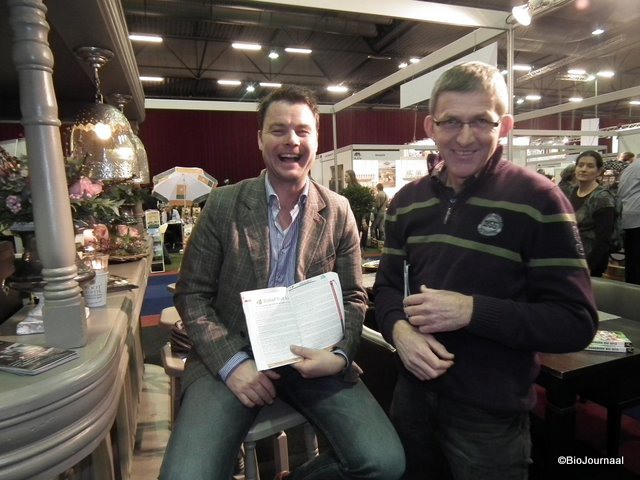 André Brouwer en Peter Sjoerdsma, die het Biofood Magazine toont (vanaf 2012 uitgegeven door Bionext).