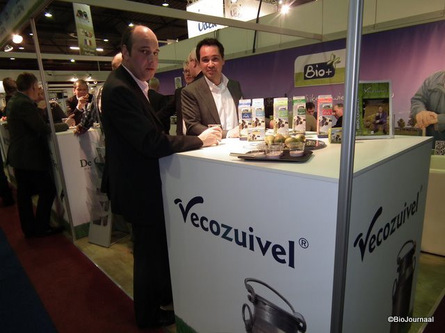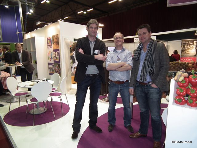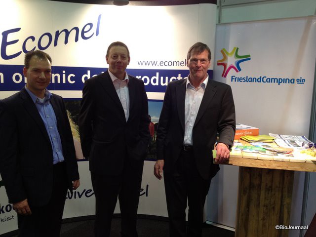FrieslandCampina staat met het merk Ecomel op de BioVak. Vlnr Edwin Crombags, Frans Keurentjes en Jan Zomerdijk.