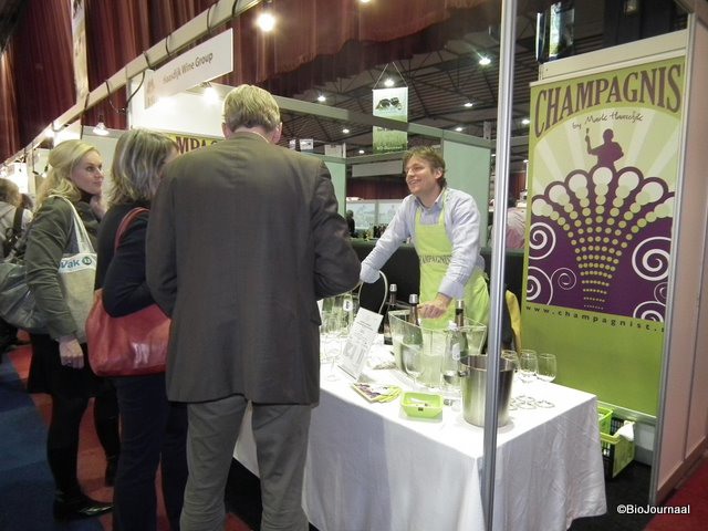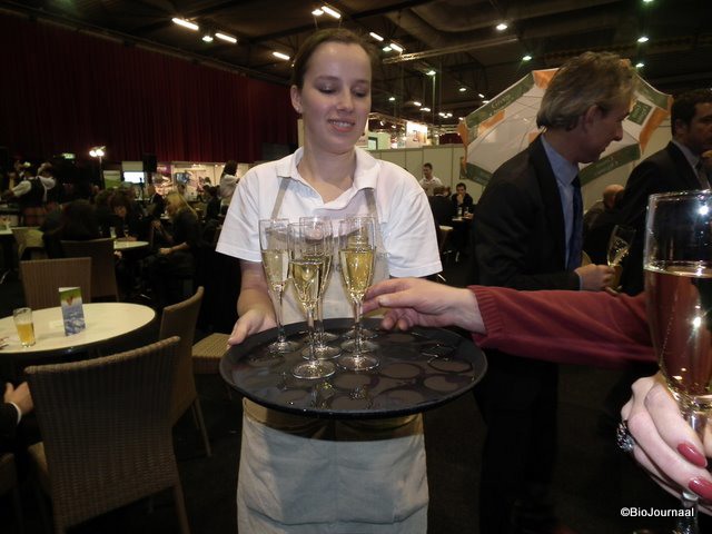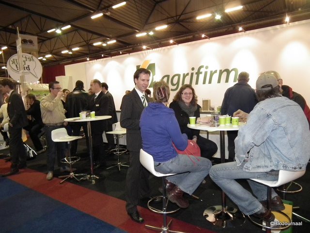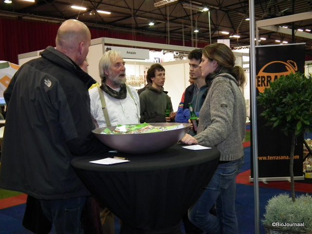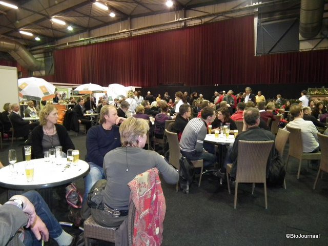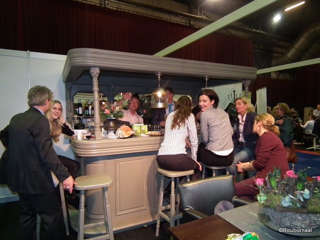 Aan het einde van de beursdagen is het traditiegetrouw gezellig druk bij de bar van Biojournaal.