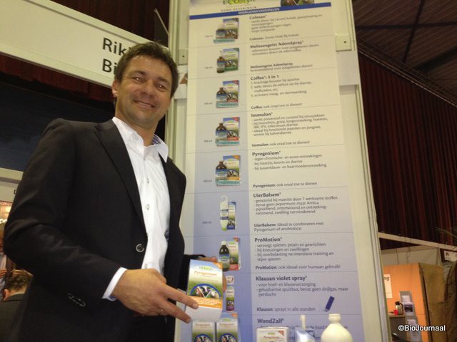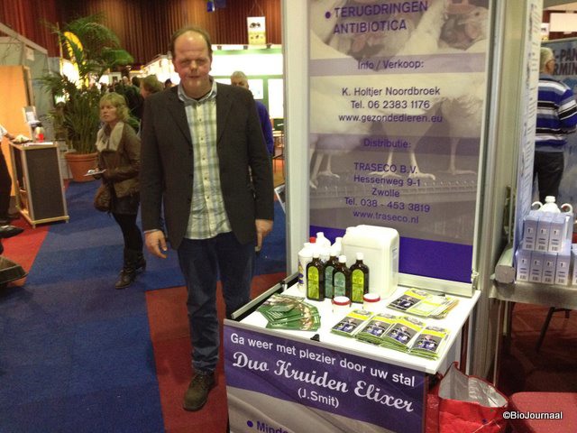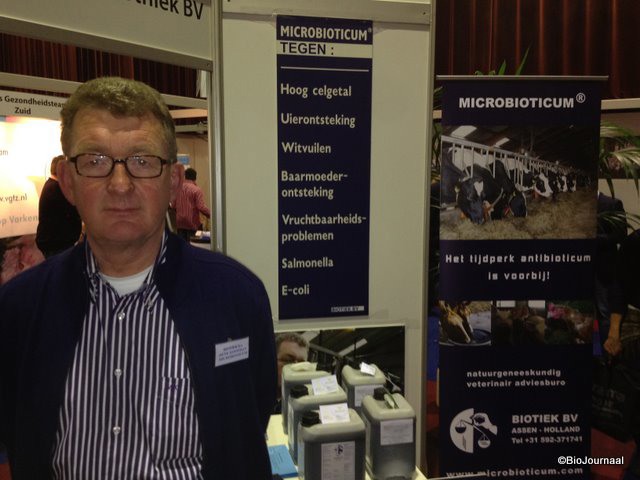Henk Koopman van Biothiek staat met zijn Microbioticum op het Diergezondheidsplein.