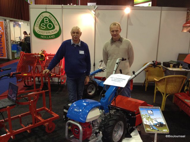 Servicebedrijf Oosterlaan onderscheidt zich op de beurs met hun kleine machines, zoals de SBO schoffelfrees die geschikt is voor gebruik in rijencultuur en openbaar groen. Bij de machine staan Laurens Burgstad (links) en Christian Oosterlaan.