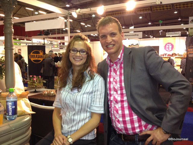 Maarten Gevers en Martha Jeuken in de stand van DO-IT. Zij presenteerden de producten van de merken Amaizin en La Bio Idea.