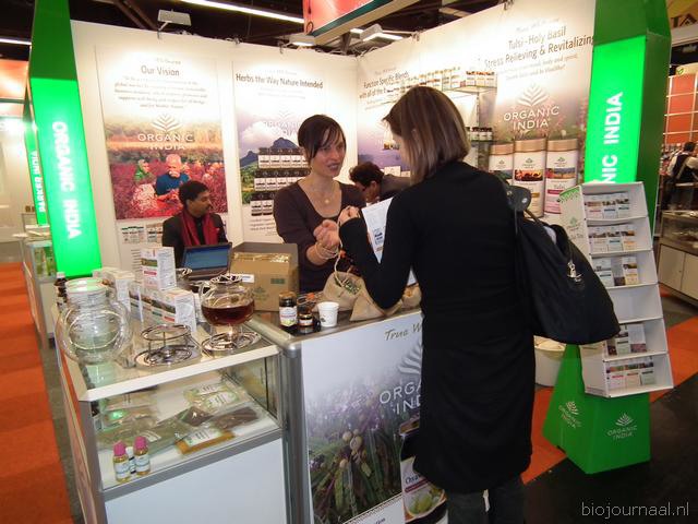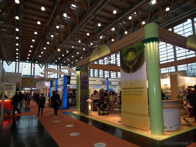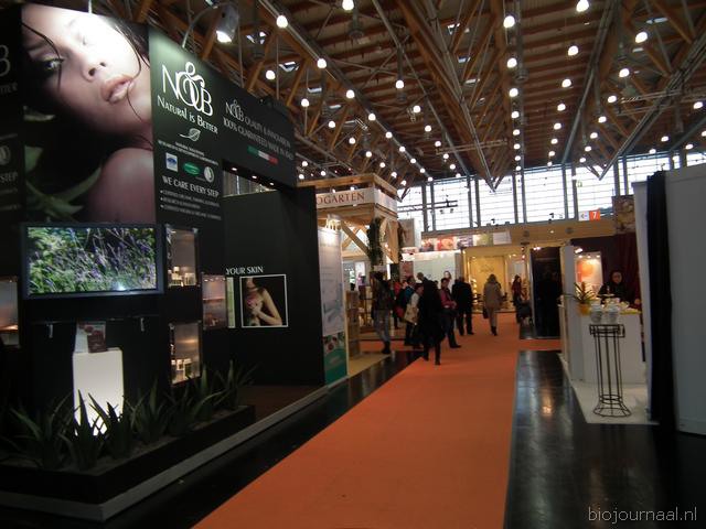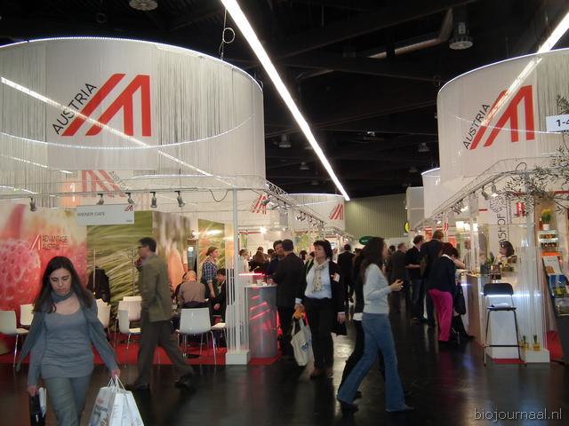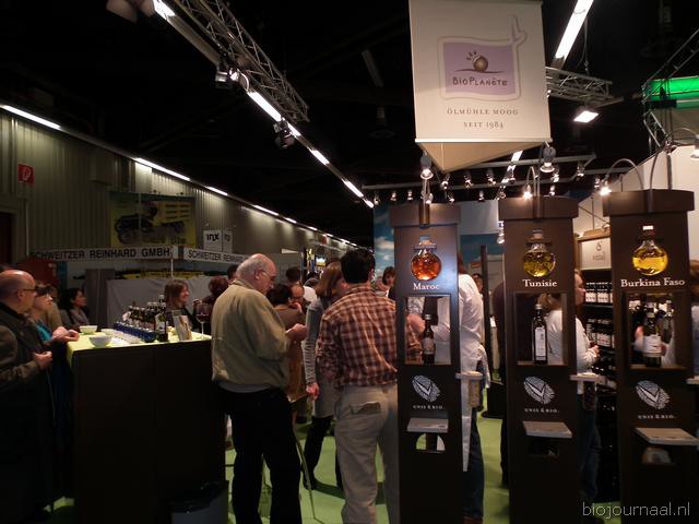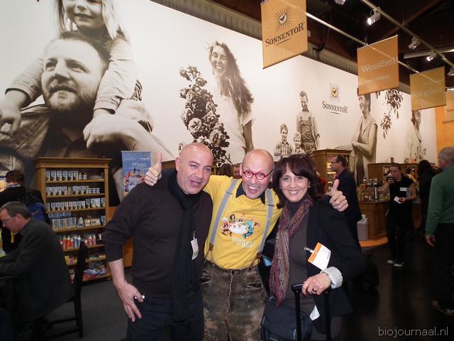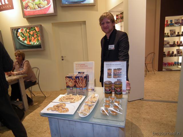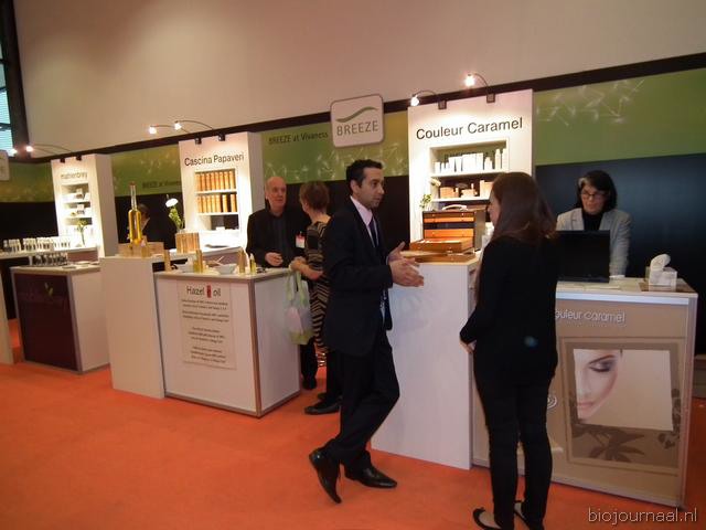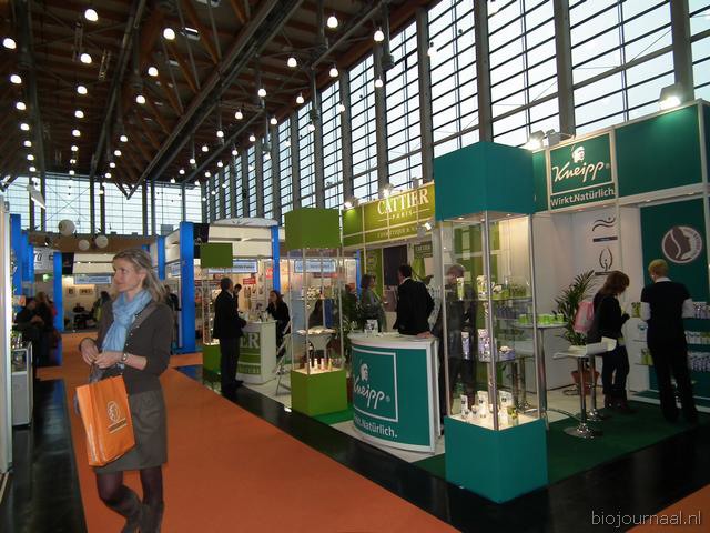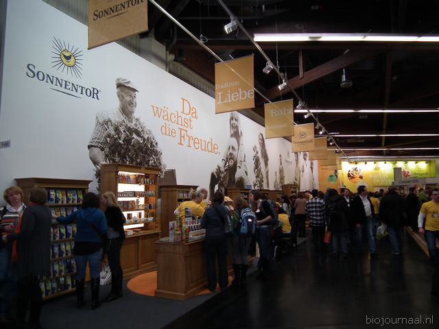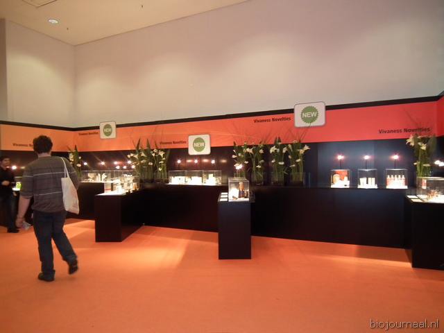 Sonnentor had wederom een zeer ruime stand. In de kasten wordt het veelzijdige assortiment getoond.