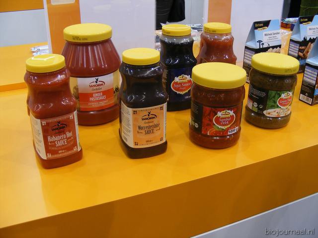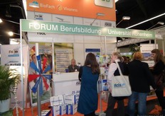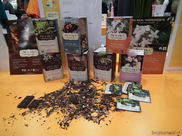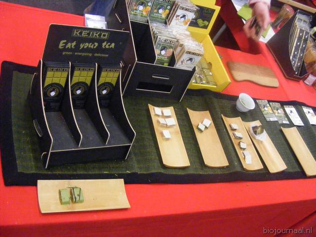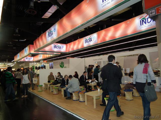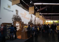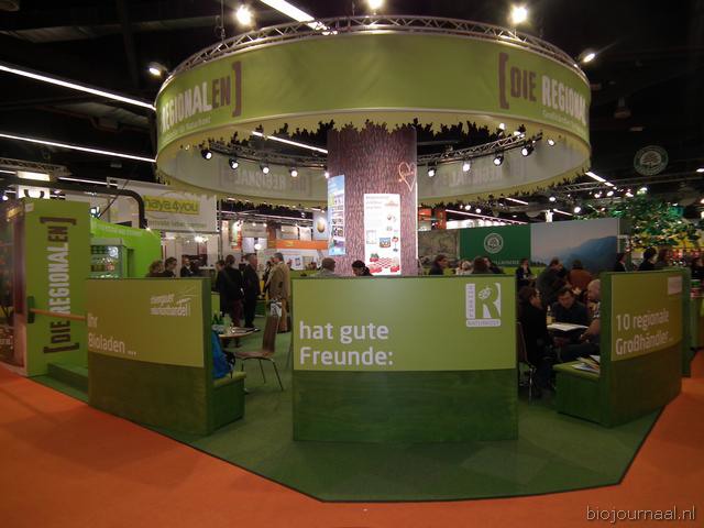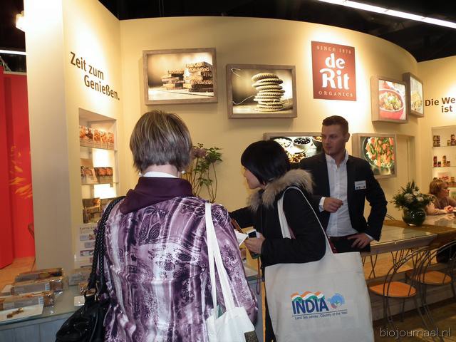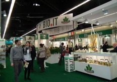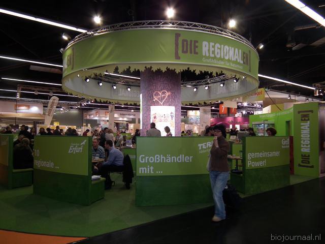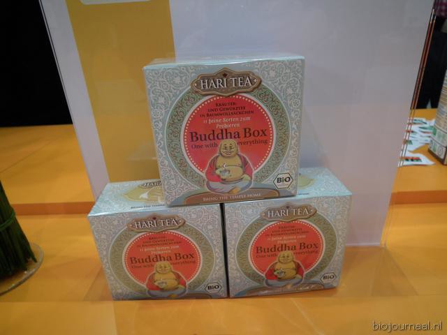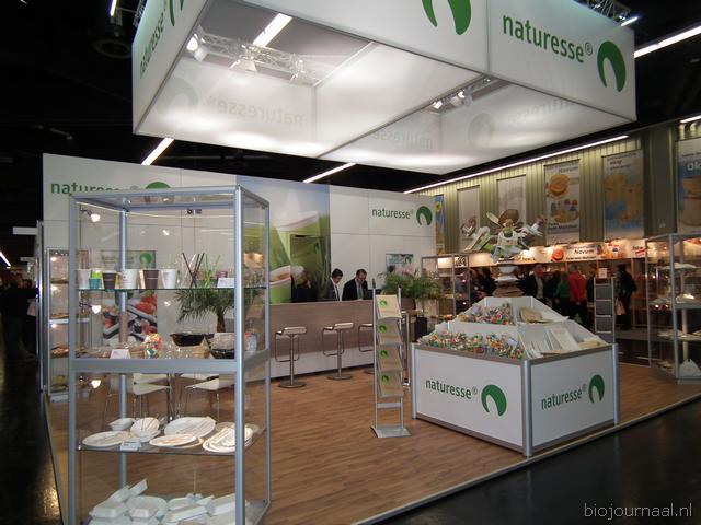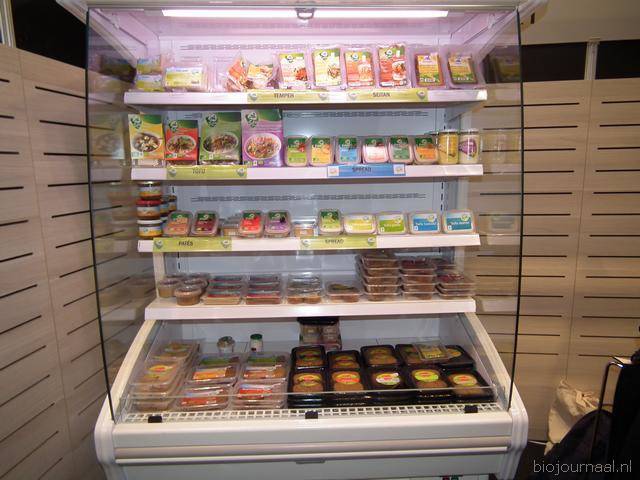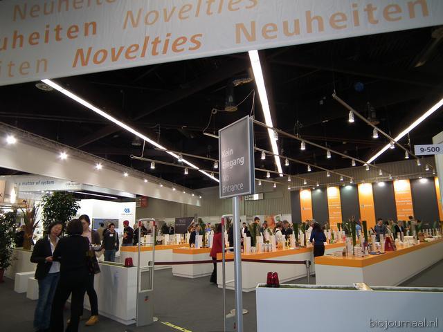 Sonnentor had wederom een zeer ruime stand. In de kasten wordt het veelzijdige assortiment getoond.