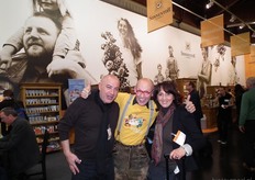 Johannes Gutmann, oprichter en bedrijfsleider van Sonnentor, poseert met twee bezoekers.