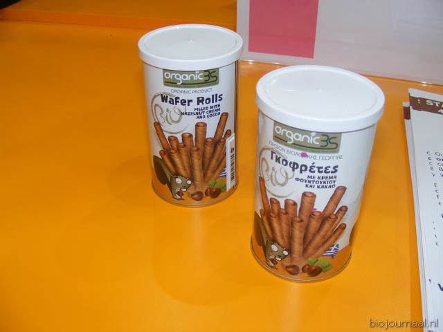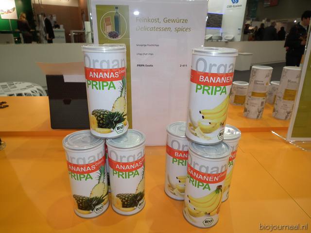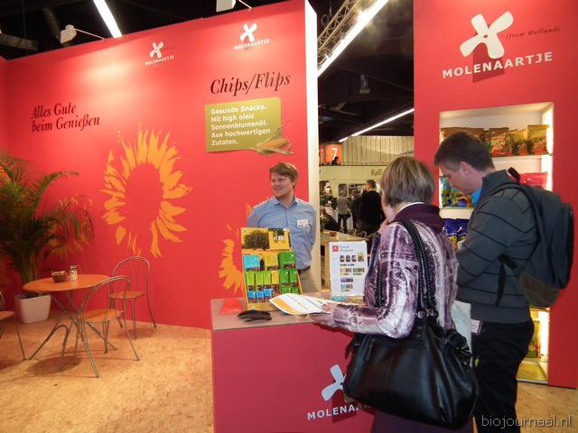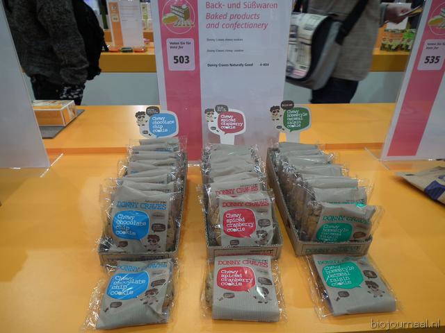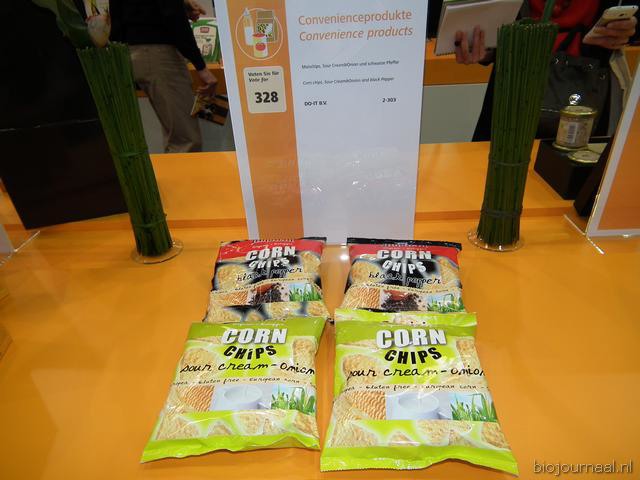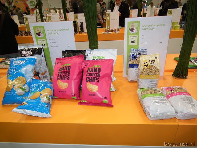 Twee Nederlandse producten naast elkaar bij de Novelties. Links de Hand Cooked Chips van Tra'fo Chips, een merk van FZ Organic Food en rechts de monstermuesli van De Halm met daarop de kindvriendelijke mueslimonsters.