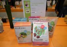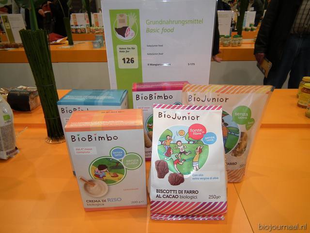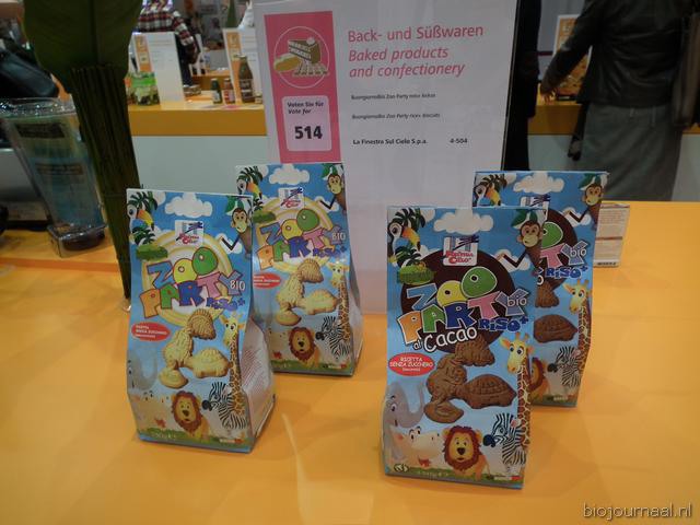 Ook steeds meer bio-producten voor kinderen. Hier de Zoo Party rice+biscuits van het Italiaanse La Finestra Sul Cielo.