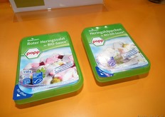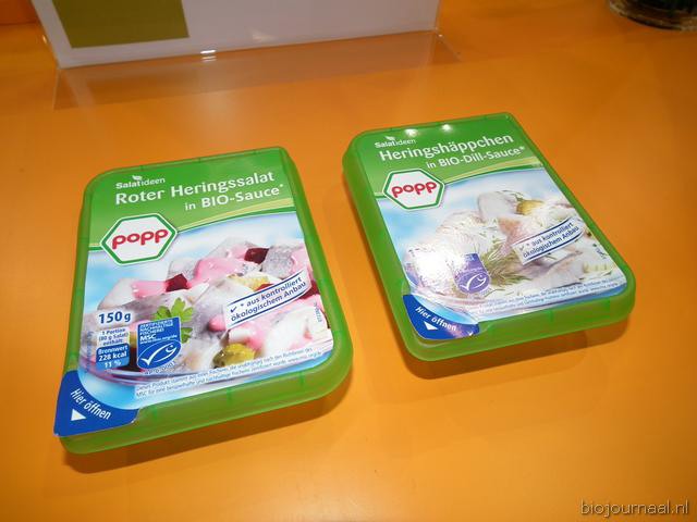 En nog meer vis... Salade met rode haringsalade in biologische saus en stukjes haring in dillesaus. Van Popp feinkost.