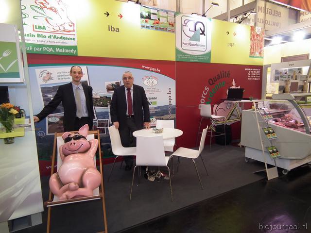 'Le Porc Fermier' van Porcs Qualité Ardenne was ook op deze beurs weer aanwezig. Hier gaat een bezoeker zelfs met het varken op de foto.