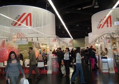 Binnen de cirkelvormige stand volop ruimte voor overleg.