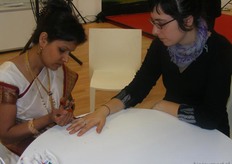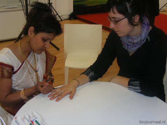 Deze dames deelden erg veel India-tasjes uit. Ze waren overal op de beurs te zien.