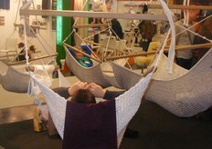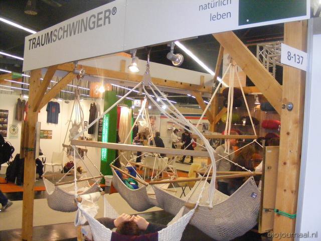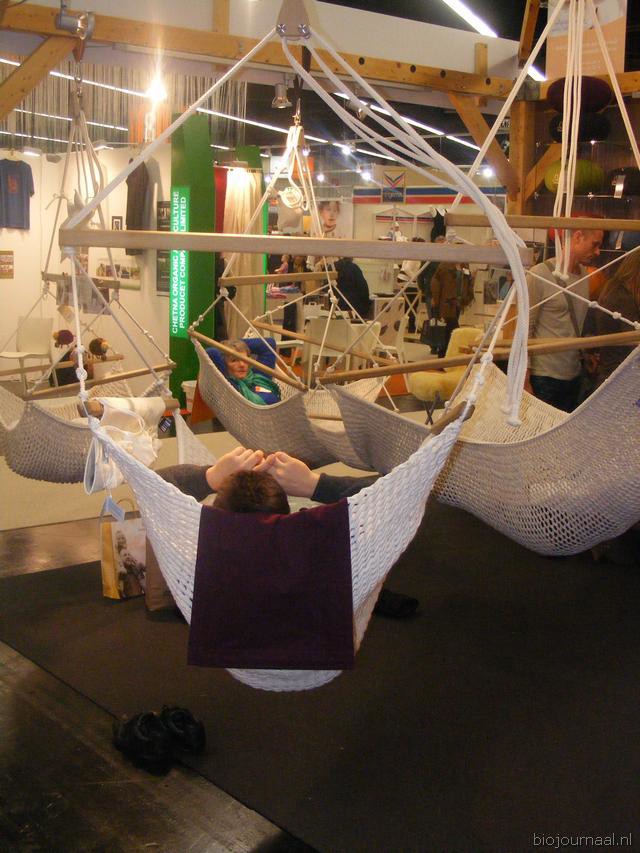 Moe maar voldaan... Aan het eind van drie dagen rondlopen op de BioFach is het best lekker om even in de hangmat te liggen.