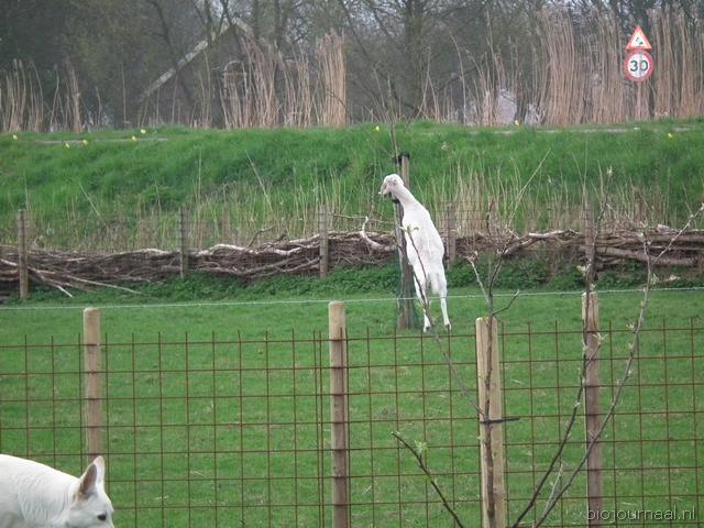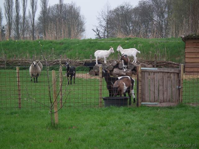 Geiten en schapen aan de rand van het terrein.