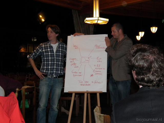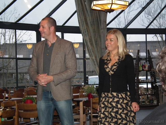 "Mike Venekamp (Atlantis Handelshuis) en Deborah nemen na het hoofdgerecht weer even het woord. Ze gaven onder meer aan dat er beter geluisterd moet worden naar jonge ondernemers. "Zij zijn de toekomst." Toen Deborah de berichtgeving over de invloed van pesticiden op bijen ter sprake bracht, ontstond meteen een discussie. Mike geeft aan dat Atlantis Handelshuis reageert op de vraag van de klanten. "Wat heb je nodig? Dan zorgen wij daarvoor en hoef je niet zelf het hele doolhof aan labels door te werken."