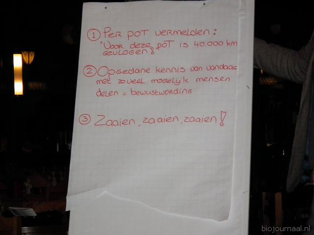 "Na het diner stelden Mike en Deborah de vraag: "Wat ga jij morgen doen." Per tafel werden diverse suggesties gedaan. De gasten aan de tafel van Harald Kerres (Xebra) gaan vandaag allemaal 2 mensen overtuigen en vragen of zij overmorgen 2 mensen overtuigen en de boodschap doorgeven."