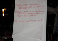 Een creatieve uitwerking van de gasten die aan de tafel bij het raam zaten. Jamie van der Lede (Origins Architecten) gaat 10 mensen motiveren om bloemen te zaaien, vertellen over het Bijendiner en de tuin laten verwilderen. Hij staat links op de foto.