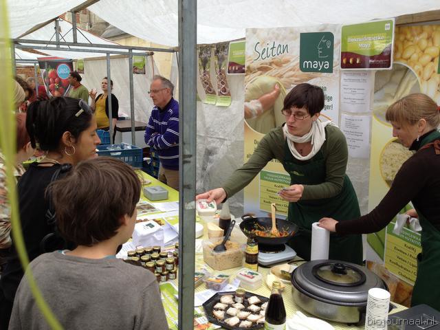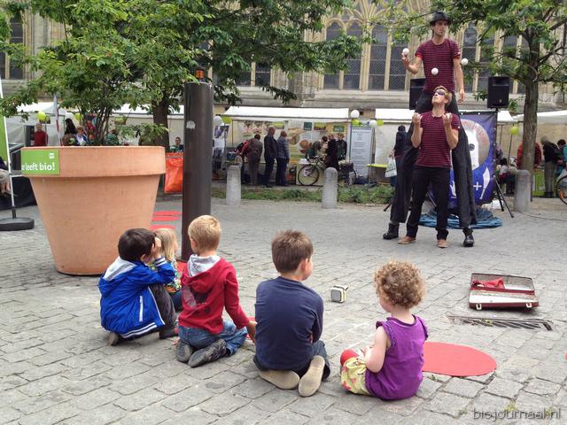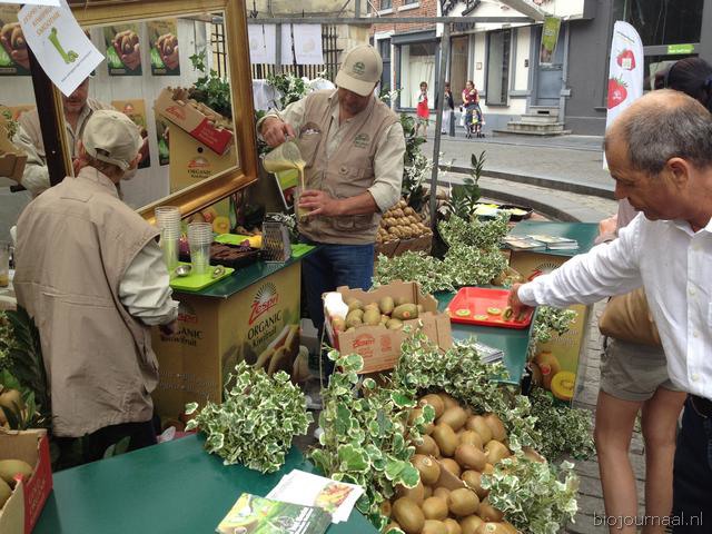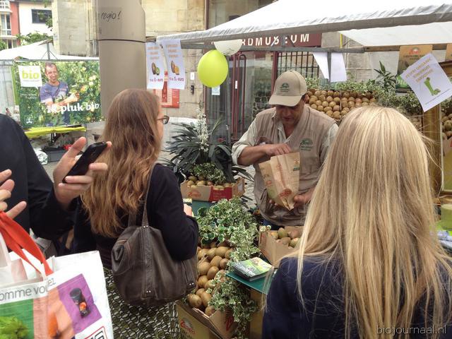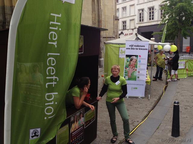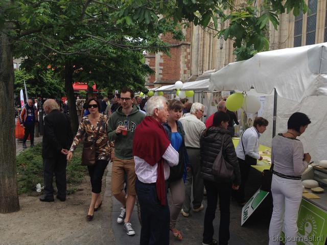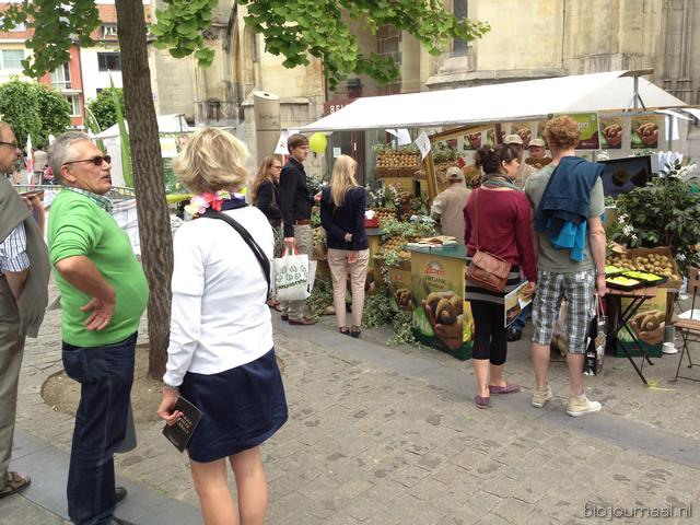Hier leeft bio! Het winkelend publiek in Hasselt kon bonnen kopen waarmee ze konden betalen bij de verschillende kramen.