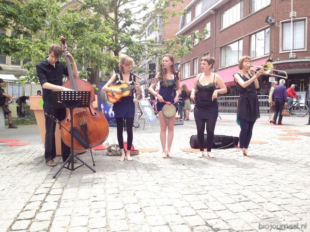 De formatie Belcirque verzorgde een wervelend optreden op 'Hasselt proeft bio'. Met zang...
