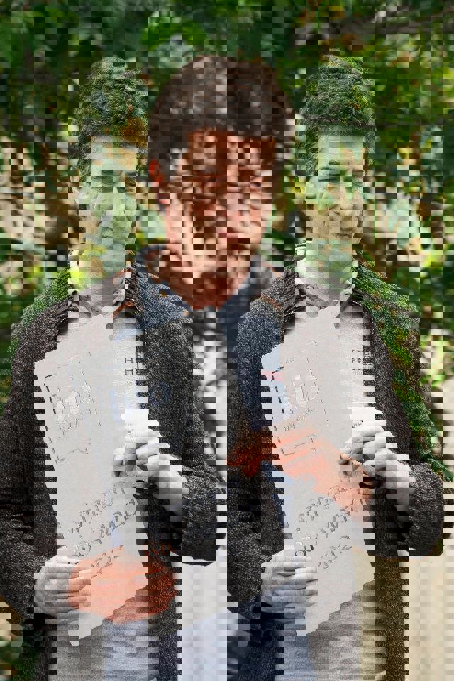 Bio Award winnaar 'smaak' Het Hinkelspel. Alexander Claeys van Het Hinkelspel nam de award in ontvangst. Hij is blij met de gewonnen award omdat hij met deze prijs aan mogelijk nieuwe afzetkanalen graag wil laten zien dat ze al dertig jaar 100% bio zijn. Foto: BioForum - Esmeralda Borgo