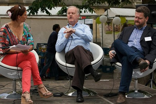 Martine Prenen in interviewgesprek met gedeputeerden Vandeput (Landbouw en economie) en gedeputeerde Smeets (Leefmilieu). Foto: BioForum - Esmeralda Borgo