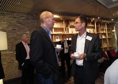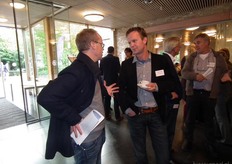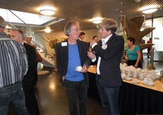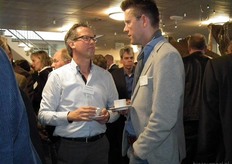 Georg Kamerbeek van Hq Organics (rechts) in gesprek met Bram Weijland van Bejo Zaden.