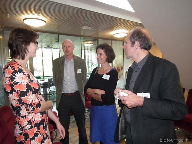Loes van Loenen (o.a. Loenaloes), Bert van Ruitenbeek (Stichting Demeter), Maaike Raaijmakers (Bionext) en Kees van Bohemen (LTO) hadden onderling duidelijk voldoende gespreksstof.