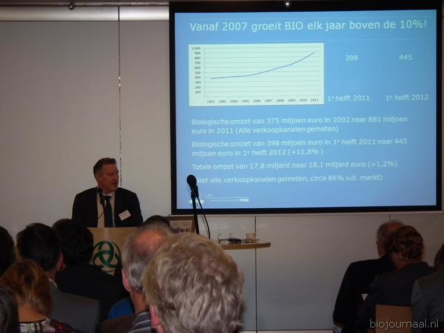 Johan Bakker van Wageningen Universiteit maakte bekend dat de consumentenbestedingen aan biologische voeding in het eerste half jaar van 2012 met bijna 12 procent (11,8%) toegenomen zijn.