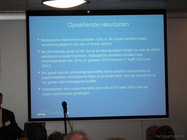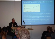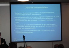 Opvallend is dat de verkoop van bio-vleeswaren in de supermarkten met 23 procent toegenomen is. En in restaurants en hotels is de verkoop daarvan zelfs verdrievoudigd. Ook kon hij melden dat supermarkten steeds meer bio-producten onder hun eigen label in de winkels leggen.