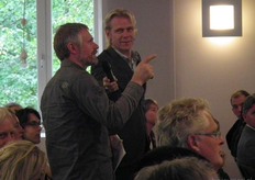 Arno Verboom (TNI) was erg geïnteresseerd in wat Jaap de Vries (directeur Skal) hem te zeggen had.