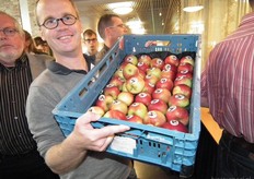 Michaël Wilde van Eosta deelde Nature & More appelen uit. Deze zijn geteeld door Harmen Peters ('t Gelders Eiland), wat te zien is op de sticker.