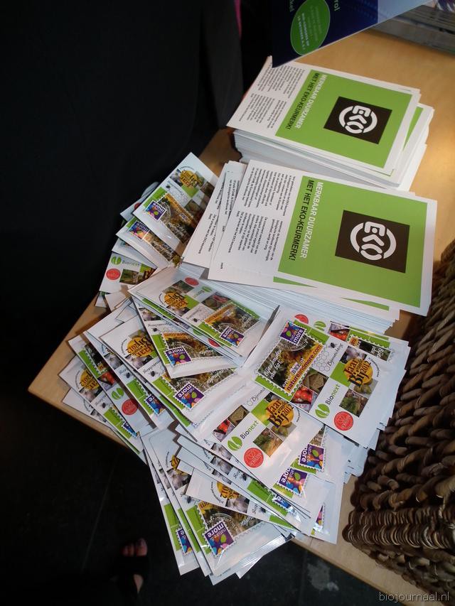 Bezoekers kregen folders met meer informatie over het EKO-keurmerk mee. Ook lagen er zakjes met bloemenzaden voor de bij.
