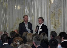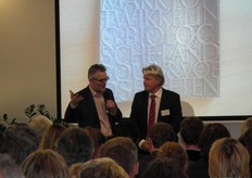 Arend Zeelenberg (Bionext) heet Frank Wijnands van Wageningen UR welkom op het congres.