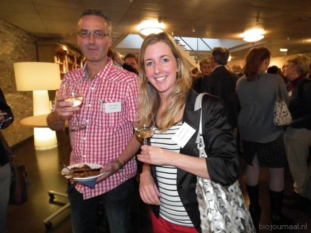 Jan Groen (Green Organics) en Annemarie Kruize (De Bolster) drinken samen een wijntje.