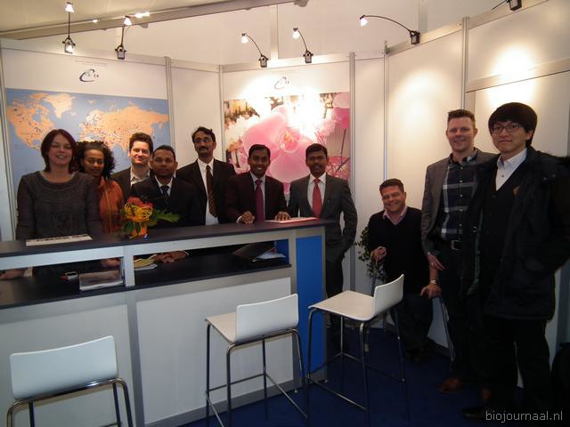 Een vrij groot team in de stand van de internationaal actieve Control Union Certfications. Links de Nederlandse Conchita Kleveringa en tweede van rechts de Nederlander Johan van den Schootbrugge. Verder staan er collega's uit onder meer Sri Lanka, Bangladesh, Ethiopië en Hongarije op de foto.