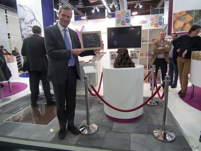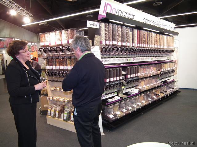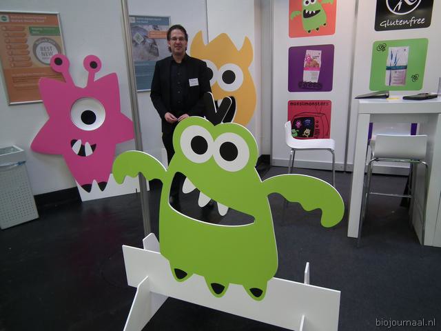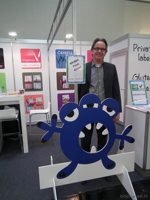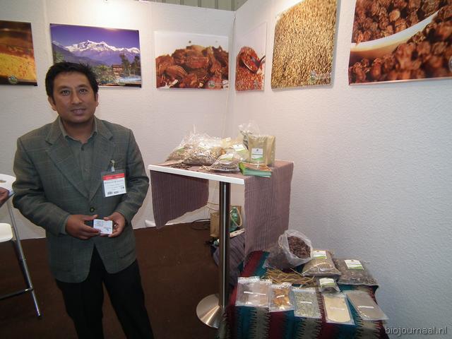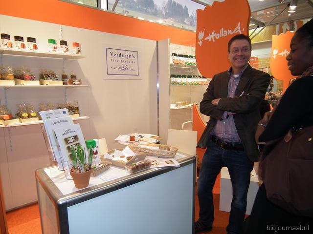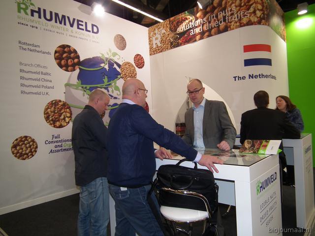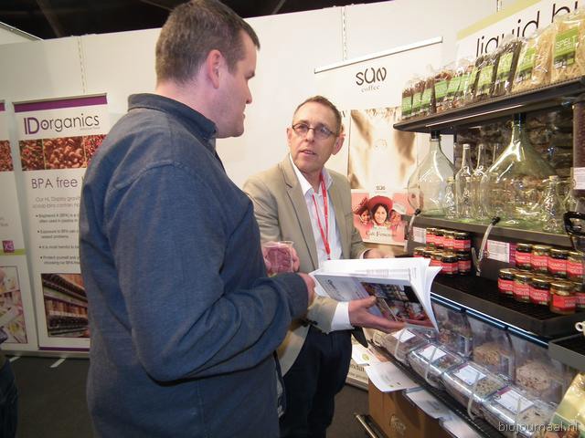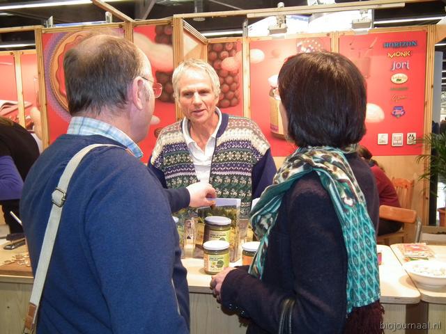 Walter Suyker in de stand van Rhumveld Winter & Konijn ( distributeur en importeur van biologische noten, gedroogd fruit en zaden).