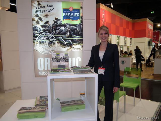 Annette van der Kooij presenteerde de biologische mosselen van Krijn Verwijs Yerseke op de BioFach. De mosselen groeien in Ierland.