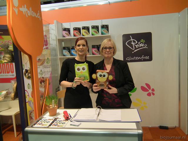 De dames van Rosies: Simone van Lanen en haar schoonzus Juliette Schellekens. Zij presenteerden de nieuwe kinderlijn. Links de biologische gezoete cornflakes.