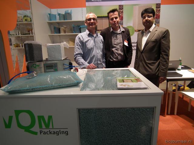 René Luyten, Edwin Willemsen en Gautam Jha van vQm Packaging BV. Zij demonstreerden hoe ze producten vacuüm kunnen verpakken.