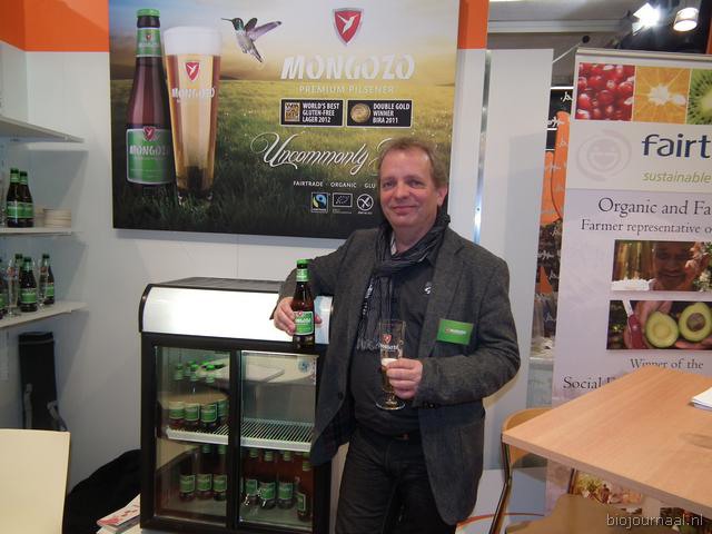 Jan Fleurkens liet bezoekers proeven van de fairtrade, biologische en glutenvrije pils van Mongozo.