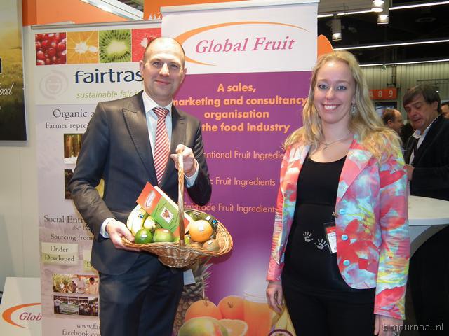 Bareld Kootstra en Sjenette Heidbuurt van Fairtrasa en Global Fruit. Zij handelen in fairtrade en biologisch verwerkt fruit.