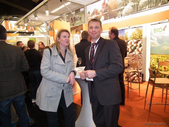 Paulien Veerman en Bavo van den Idsert (directeur Bionext) op bezoek in de stand van Tradin Organic Agriculture.